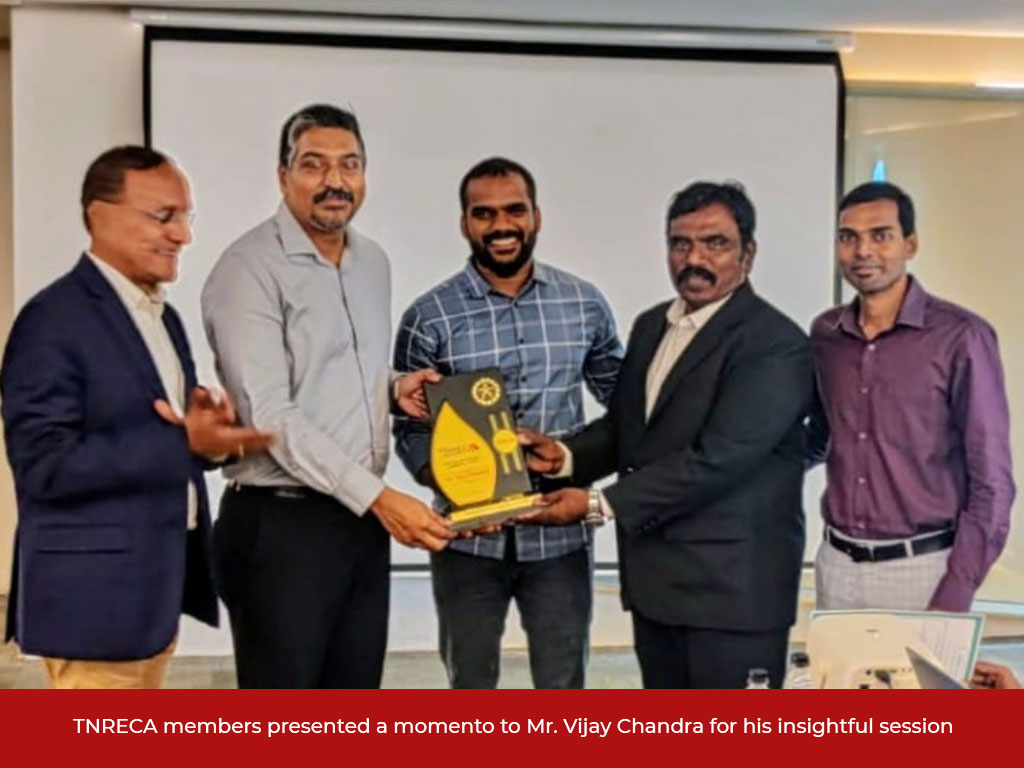 TNRECA Meetings 2026 Events TNRECA April Month AGM Meeting 2026 TNRECA March Month 2026 Meeting TNRECA February Month 2026 Meeting TNRECA January Month 2026 Meeting 2025 Events TNRECA Member Mr. Senthil Kumar felicitated Team Stepstone for their support to TNRECA TNRECA December Month Meeting 2025 CP meet organised by Sameera Estates at their Kodaikanal Project TNRECA September Month Meeting TNRECA Monthly Meeting TNRECA Monthly Meeting Oct 2025 Nu-Tech felicitated TNRECA Members TNRECA President Mr. Ajay Kumar felicitated Mr. Kamal Raja Lingam, Sr. Vice President of Urbanrise Group EC member Mr. Balamurugan felicitating Mr. Raghupathi, Head of Channel Sales, Urbantree Infrastructure TNRECA President Mr. Ajay Kumar felicitated Mr. GR Siva Kumar & Team Connect for their consistent support to TNRECA TNRECA Association | May Month Meeting at Hablis Hotel, Guindy TNRECA President Mr. Ajay Kumar facilitating Mr. Sanjay Chugh, City Head and Director – Anarock TNRECA Association | March Month Meeting at Hablis Hotel, Guindy MGP CEO, Mr. Prabhu was honored and felicitating by Mr. Venkoba Rao from TNRECA Association TNRECA Association, Mr.Kribakaran had the honor of felicitating the COO of MGP Developers TNRECA Association x Voora Property Developers TNRECA president Mr.Ajay Kumar felicitating Mr.Eshwar (Consultant of Voora Property Developers) VGN Group recently had a productive meeting with the TNRECA Association TNRECA Association Members’ Birthday Celebration! AGM Meeting – 7th Jan 2025 @ Hablis Hotel, Guindy TNRECA Group photo with Casagrand Best Association Support Award-2023-24@ Hablis Hotel, Guindy EC Meeting 2nd Jan 2025 @ Hablis Hotel, Guindy 2024 Events Meeting held on 10th Dec 2024Venue: Hotel Hablis, Guindy TNRECA immediate Past Office Bearers was facilitated @ Hotel Hablis, Guindy Newly Elected Team of TNRECA Association @ Hotel Hablis, Guindy EC Meeting held on 3-12-2024Venue: Hotel Hablis, Guindy RECON 2.0 30th Jan 2024@ ITC Grand Chola, Chennai Meeting held on 07-11-2024Venue: Hotel Hablis, Guindy RECON 2.0 Success Meet 5th Feb 2024 @ Hablis Hotel Monthly Meeting 9th Apr 2024 Sponsered by VRX @ Hablis Hotel, Guindy Monthly Meeting 10-9-2024Monthly Meet was held on 10/09/2024 Monthly Meeting (AGM) 13-8-2024 Sponsored by Doshi & Siddharth @ Hablis Hotel Guindy Monthly Meeting 09-7-2024Meeting With Creations Promoters held in Hotel Hablis Guindy Monthly Meeting 9-4-2024Meeting With DRA Homes held in Hotel Hablis Guindy Monthly Meeting 11-6-2024Meeting held in Hotel Hablis sponsored by VGN Monthly Meeting 21-5-2024 Special Monthly Meeting @ Hotel Hablis, Guindy Monthly Meeting 14-5-2024 @ Malles Prominence T Nagar Monthly Meeting 9th Apr 2024 Sponsered by VRX @ Hablis Hotel, Guindy Meeting held on 08-10-2024Venue: Hotel Hablis, Guindy 2023 Events Monthly Meeting 10-10-2023 Hablis Hotel 5th AGM Meeting 8-8-2023Venue: Hotel Hablis, Guindy Monthly meeting 7th NOV 2023E Residences Hotel Meeting on 7th Nov 2023 VGN Paradise site Sponsored by VGN @ VGN Paradise, Vimco Nagar 2019 Events Recon’ 19 Event Quick Links :HomeAbout usMembersAdvertiseRecon 2.0 TNRECA Latest News :Events / GalleryVideosTNRECA AwardsCSR Activity Important Links :Office BearersCommittee’sSponsor EnquiryAssociated DevelopersJoin our Association Contact Us :Mobile no+91 9363907294Email : info@tnreca.com